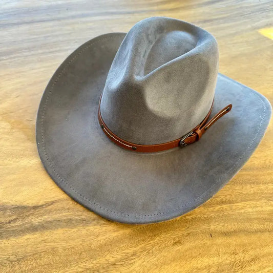 VEGAN SUEDE COWBOY HAT W/ LEATHER BELT