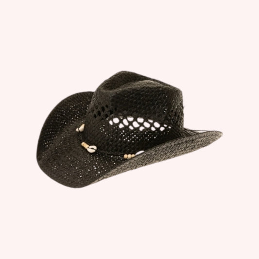 Straw Cowboy Hat w/ Seashells – Handwoven & Shapeable