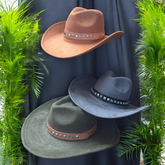 • VEGAN SUEDE COWBOY HAT  METAL STUDS BELT