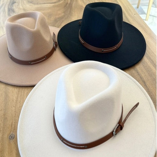 VEGAN FELT RANCHER WITH LEATHER BELT