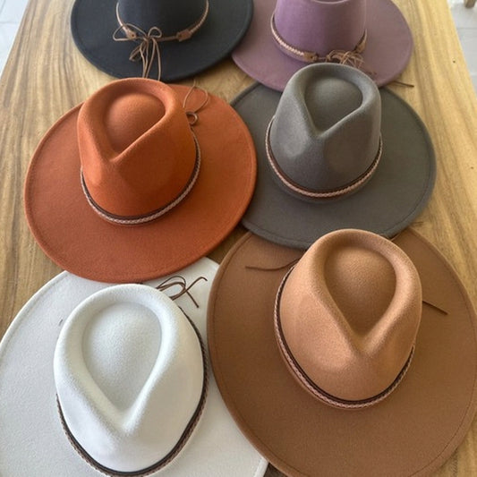 VEGAN FELT RANCHER HAT WITH BRAIDE LEATHER BELT