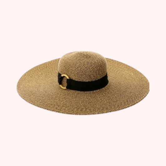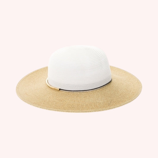 Two-Tone Sun Hat w/ Gold Accent – Packable & UPF 50+
