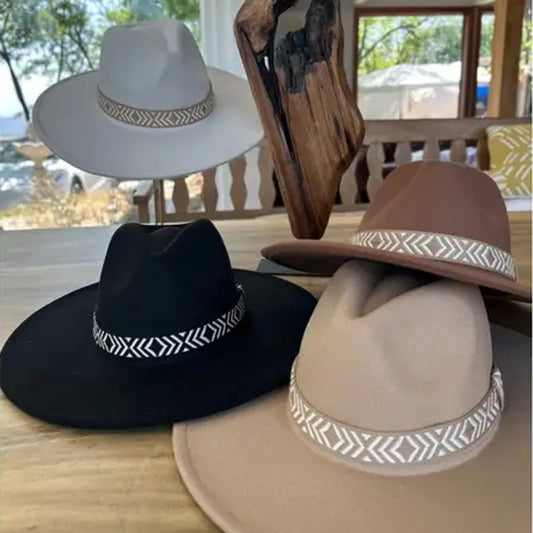 VEGAN FELT FEDORA HAT W/ JACQUARD TAPE