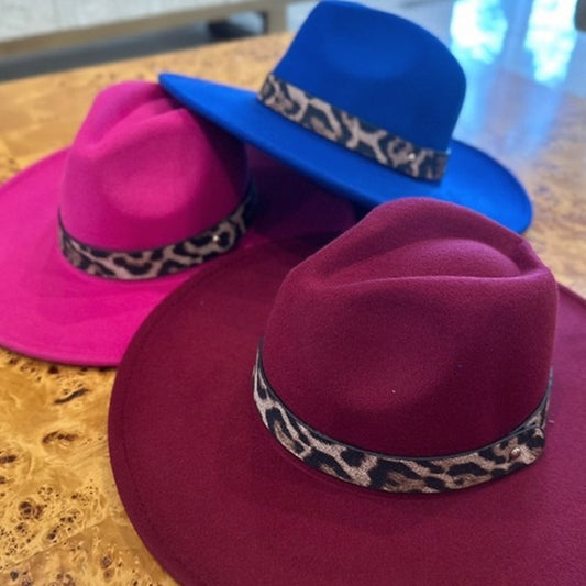 VEGAN FELT FEDORA LEOPARD PRINT BELT
