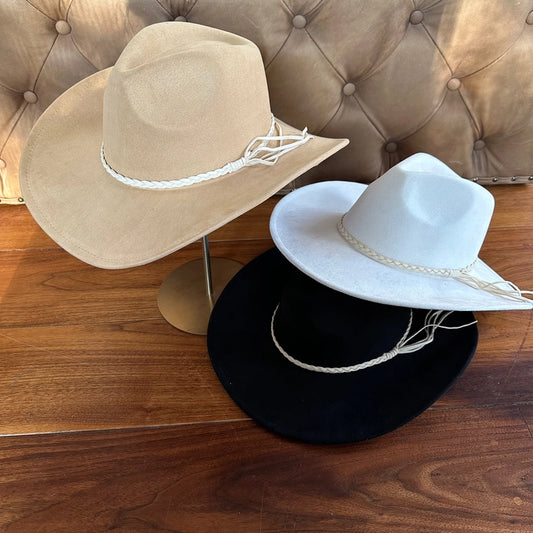VEGAN SUEDE COWBOY HAT W/ BRAID SUEDE BELT
