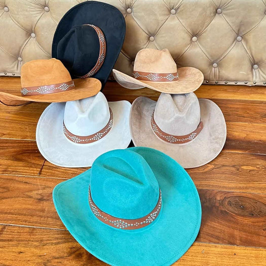 VEGAN SUEDE COWBOY HAT STUDDED LEATHER BELT