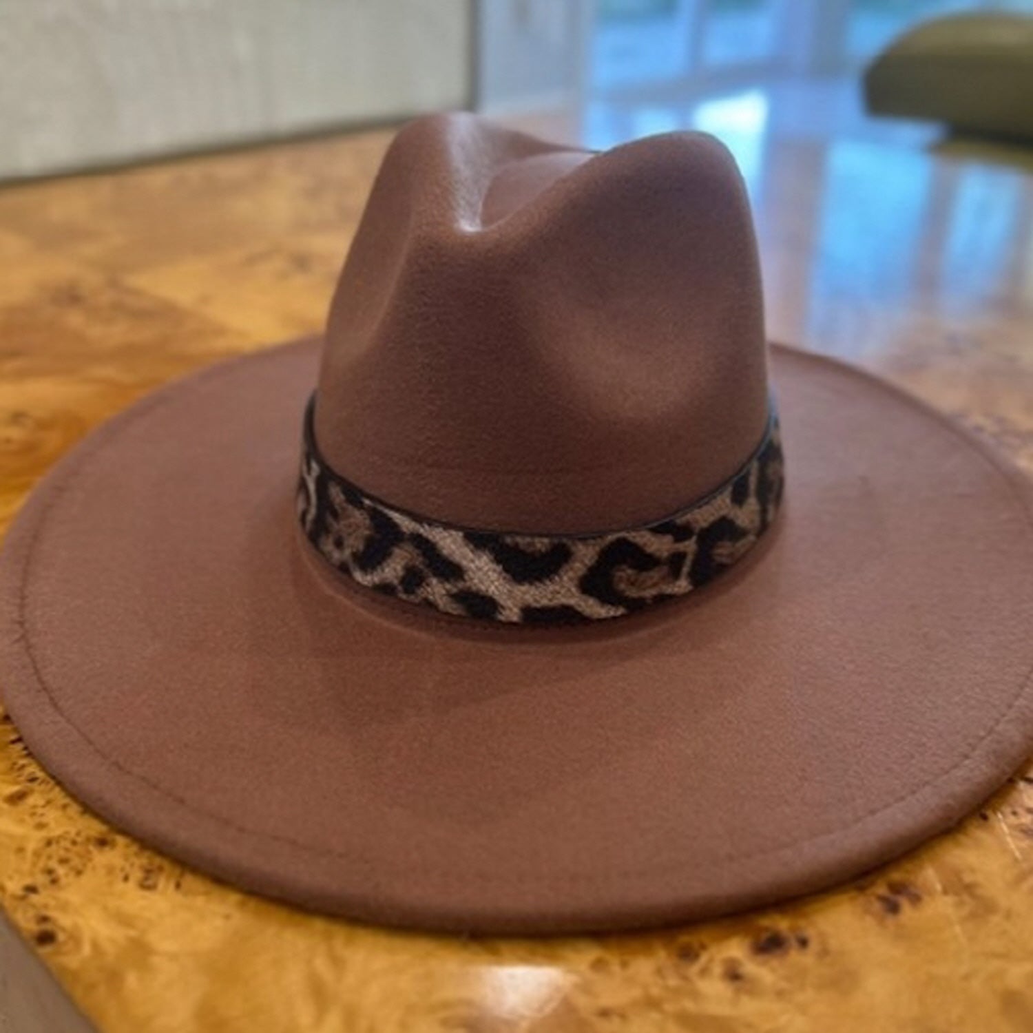 VEGAN FELT PANAMA HAT W/ LEOPARD PRINTED BELT